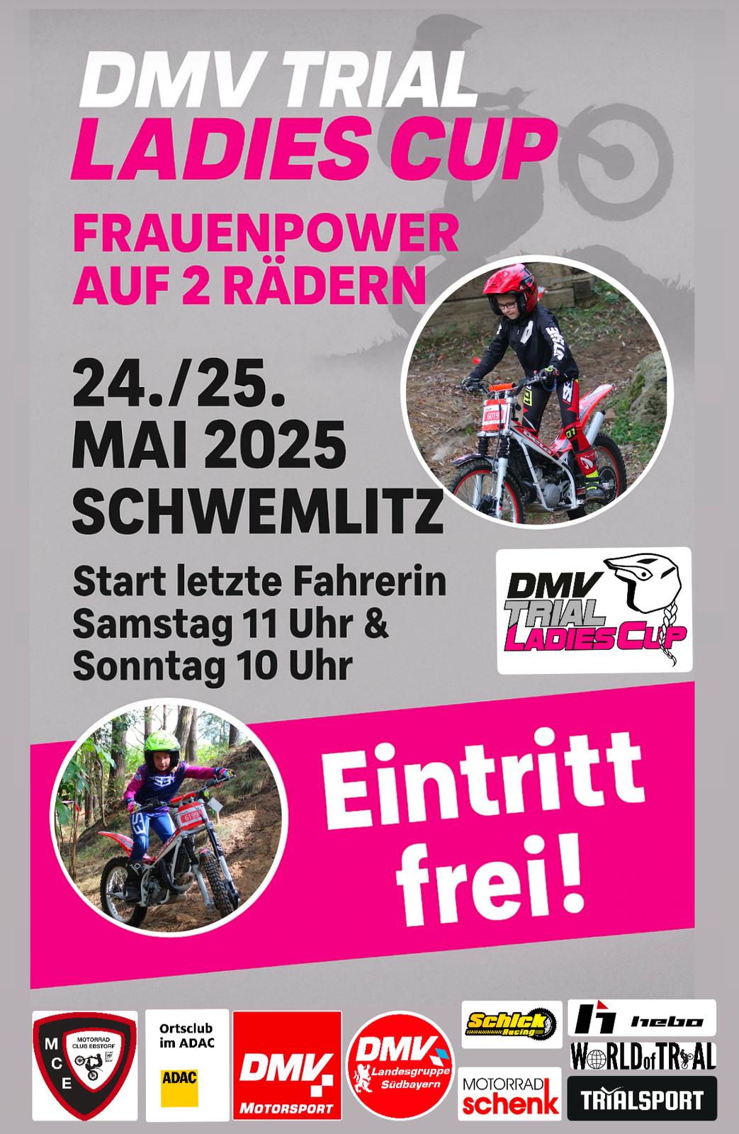 Am kommenden Wochenende ist der DMV Trial Ladies Cup beim MC Ebstorf e.V. zu Gast und trägt dort die Läufe drei und vier in diesem Jahr aus. Im Trialgelände im niedersächsischen Rosche, wo die Trial-DM zuletzt 2023 zu Gast war, hat das Organisationsteam rund um die 1. Vorsitzende des MC Ebstorf e.V., Jessica Wenck, acht Sektionen vorbereitet, die an beiden Tagen jeweils viermal zu durchfahren sind.